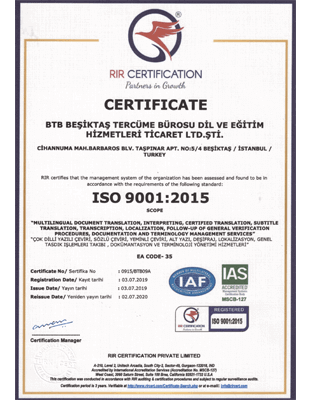 BTB Beşiktaş Tercüme Sertifikalar ...